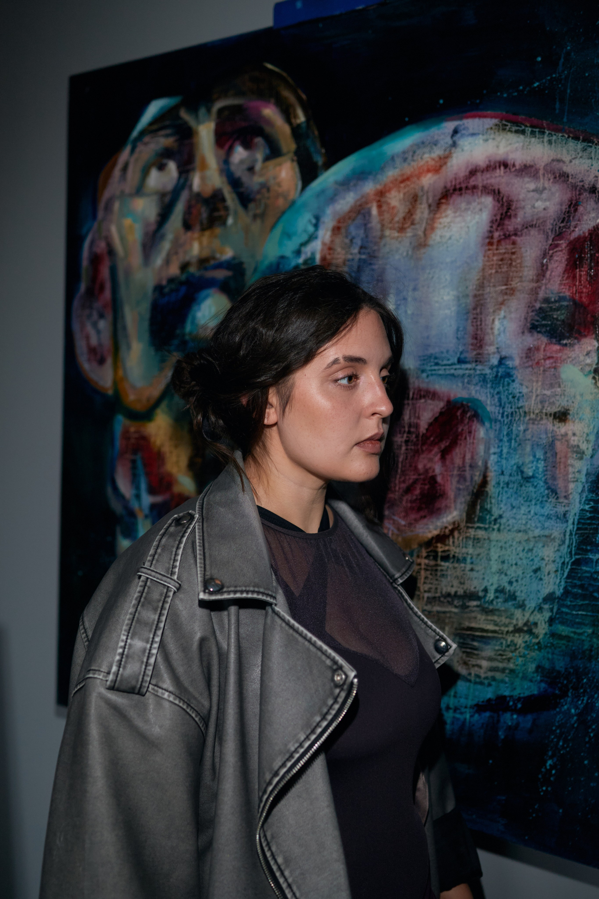 Я взяла с собой на съемку вспышку и в конце предложила Кате сделать несколько кадров с ней. Насколько же радикально меняется общий вайб и настроение — и тут Катя уже как будто в светской хронике на презентации своих картин в какой-то классной галерее!