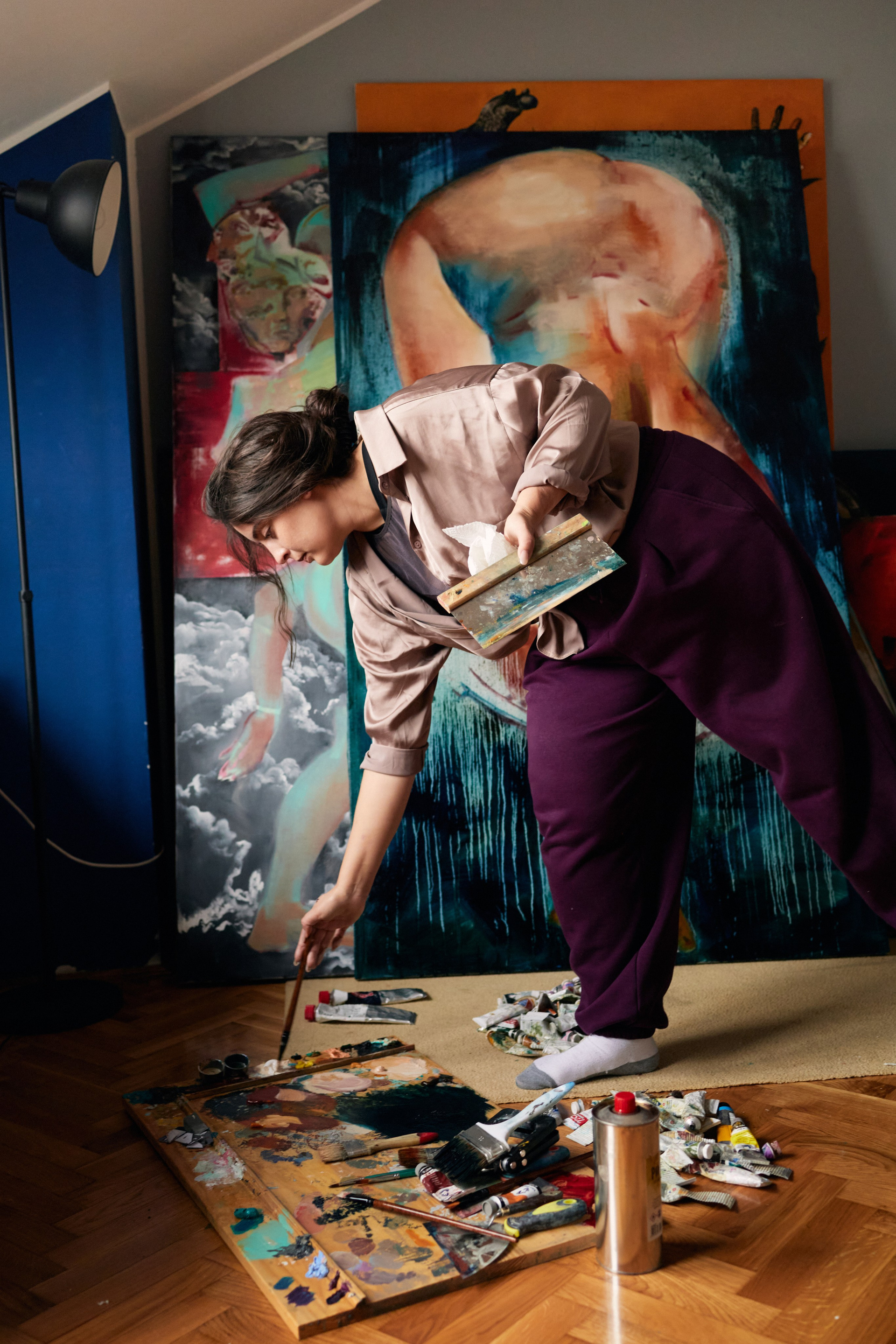 Катя — талантливая самобытная художница, которая живет и работает в Нови Саде, в Сербии. Катя пригласила меня на съемку в качестве фотографа. Фото-студией послужила Катина студия, где она пишет свои картины.