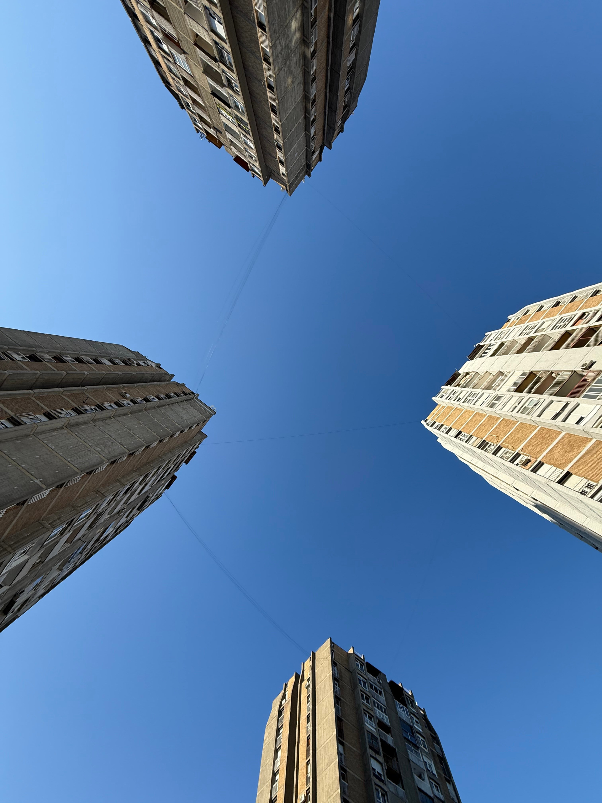 Смотрим наверх. Я разворачиваюсь спиной к зданию и снимаю девчонок. Они кричат: