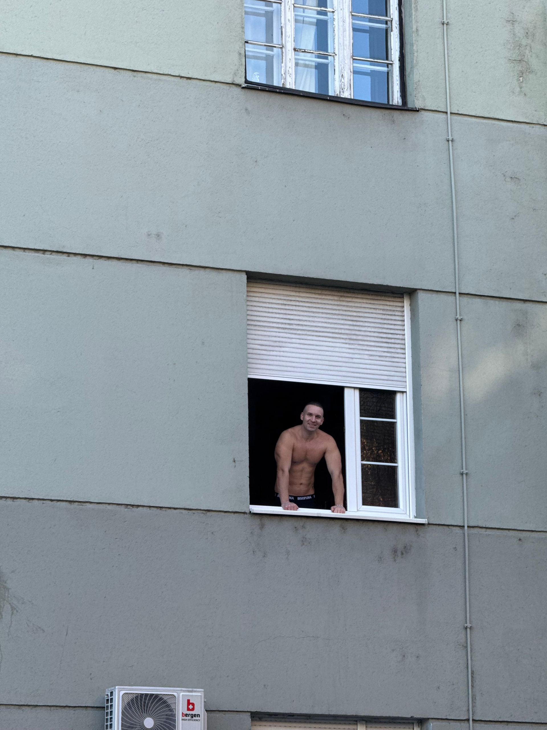 Фотографирую мужчину в окне. Мы уже даже не прячемся.